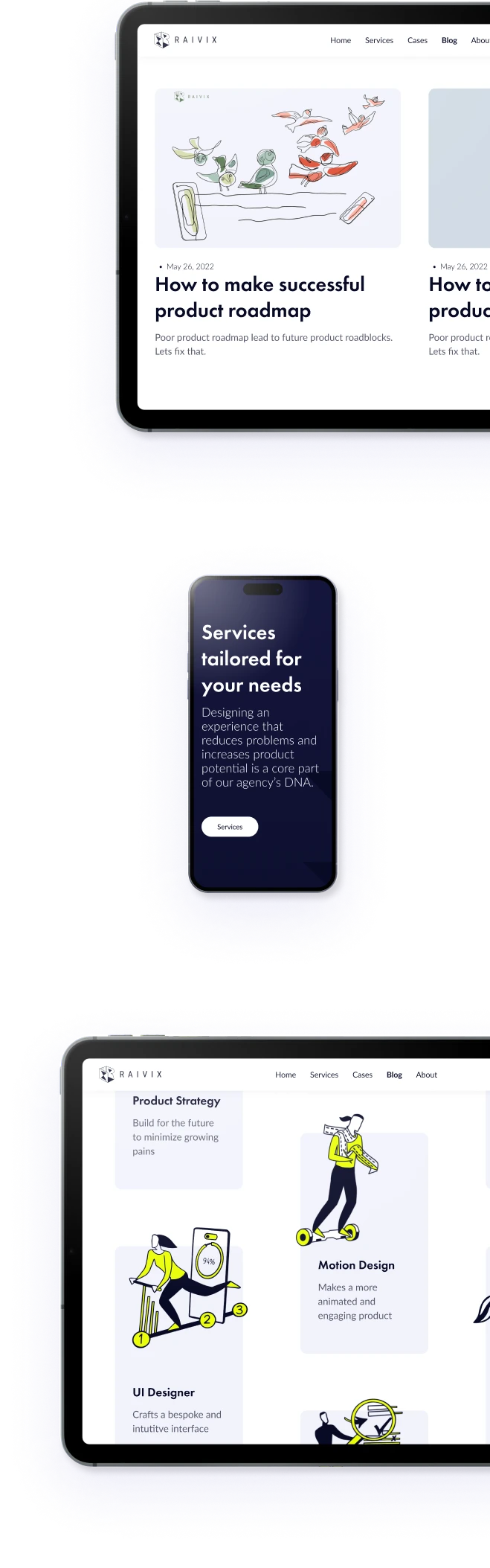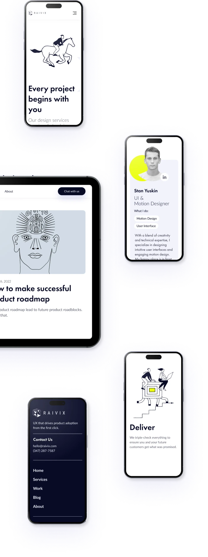 With a focus on UI and Motion design, I contributed to the development of RAIVIX's website by crafting intuitive interfaces and subtle animations. My sincere passion for this role allowed me to continuously explore innovative approaches, leading to designs that aimed to enhance user experiences in a modest yet impactful manner.
